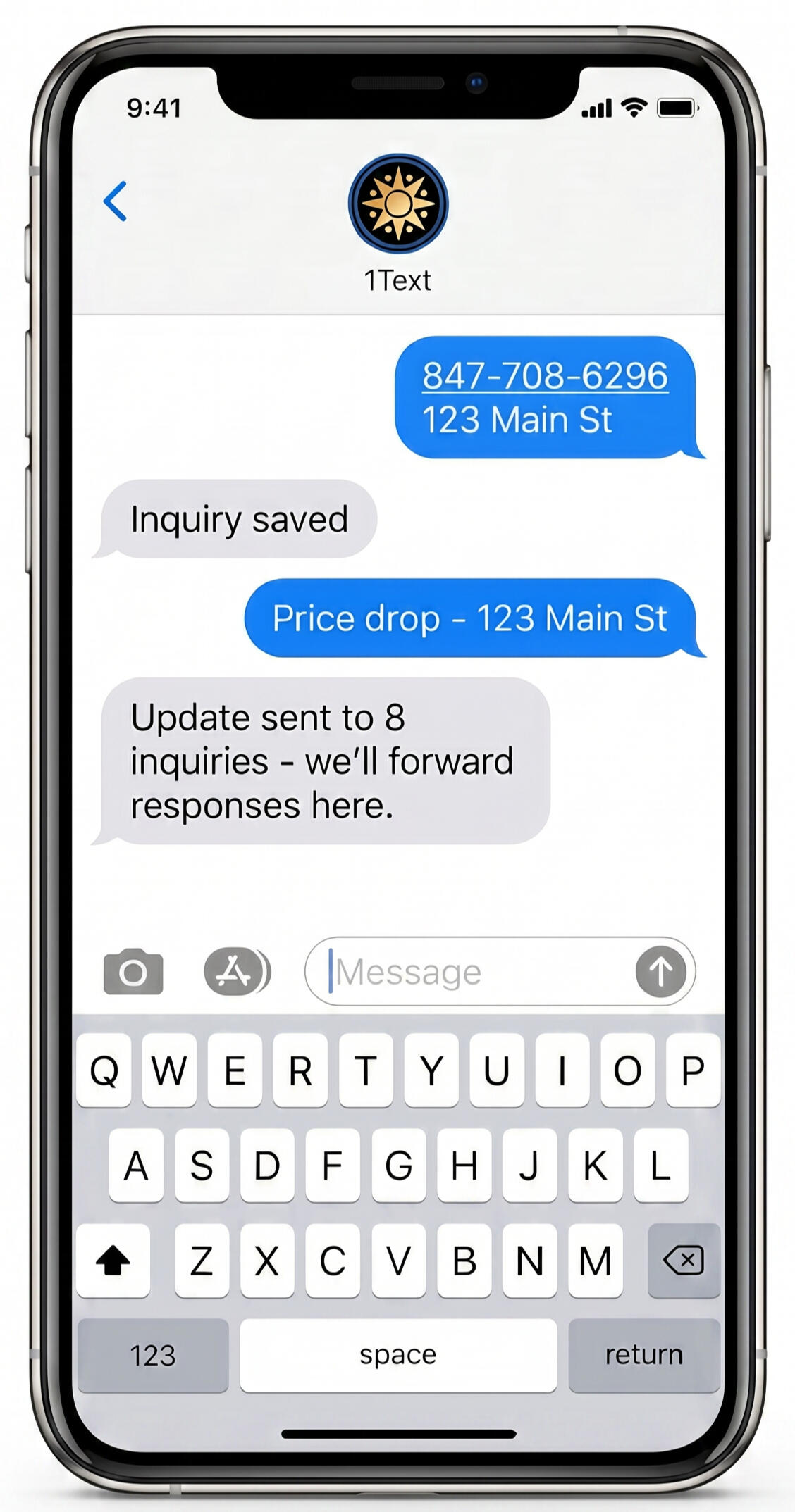 Price drop or update? Text us "price drop, open house, or back on market" —we notify your prior inquiries instantly.